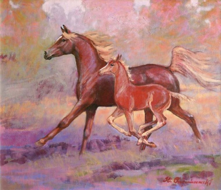 Galop z Mamą, olej na płótnie Gallop with Mom, oil on canvas / 70×90, 2021